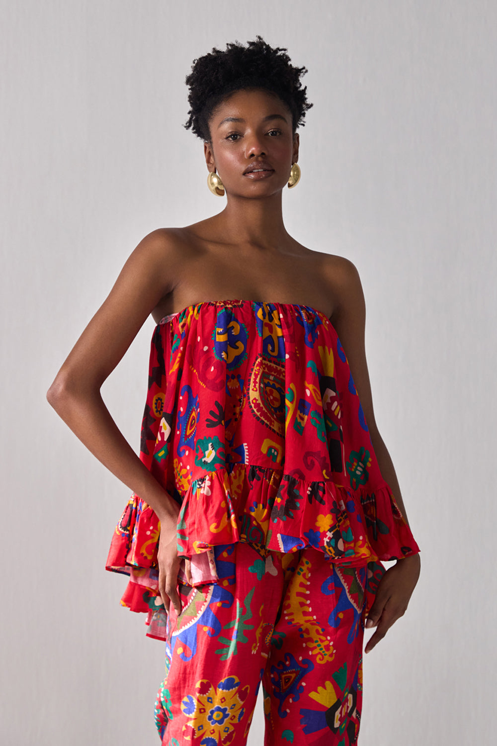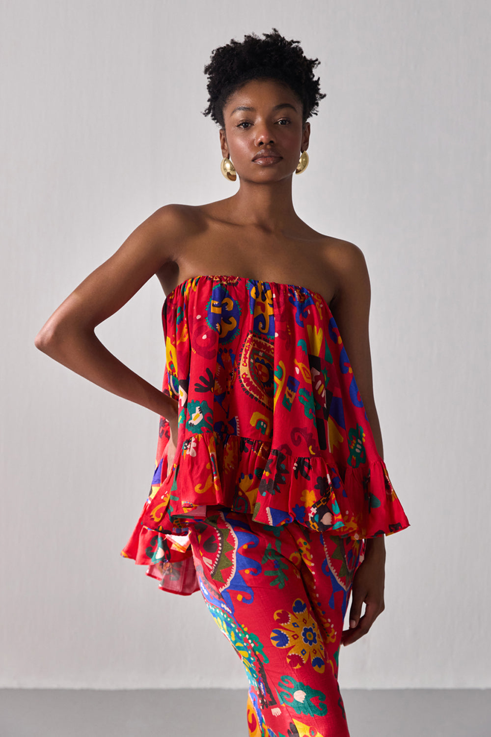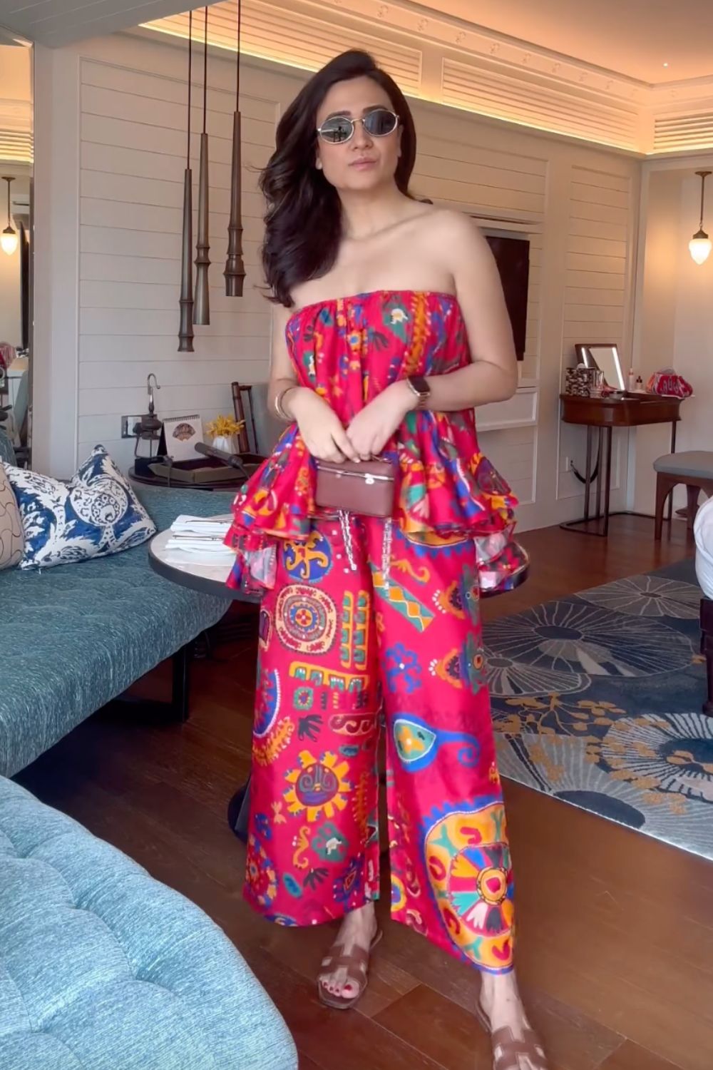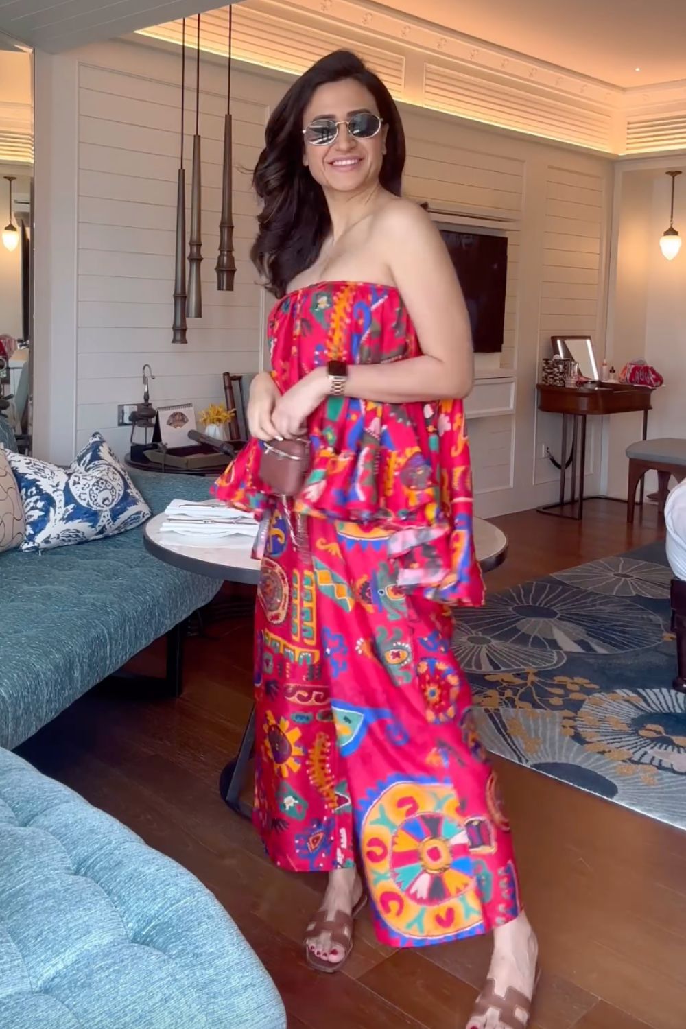 طول الموديل - يبلغ طول الموديل 5'9" وترتدي مقاسًا متوسطًا