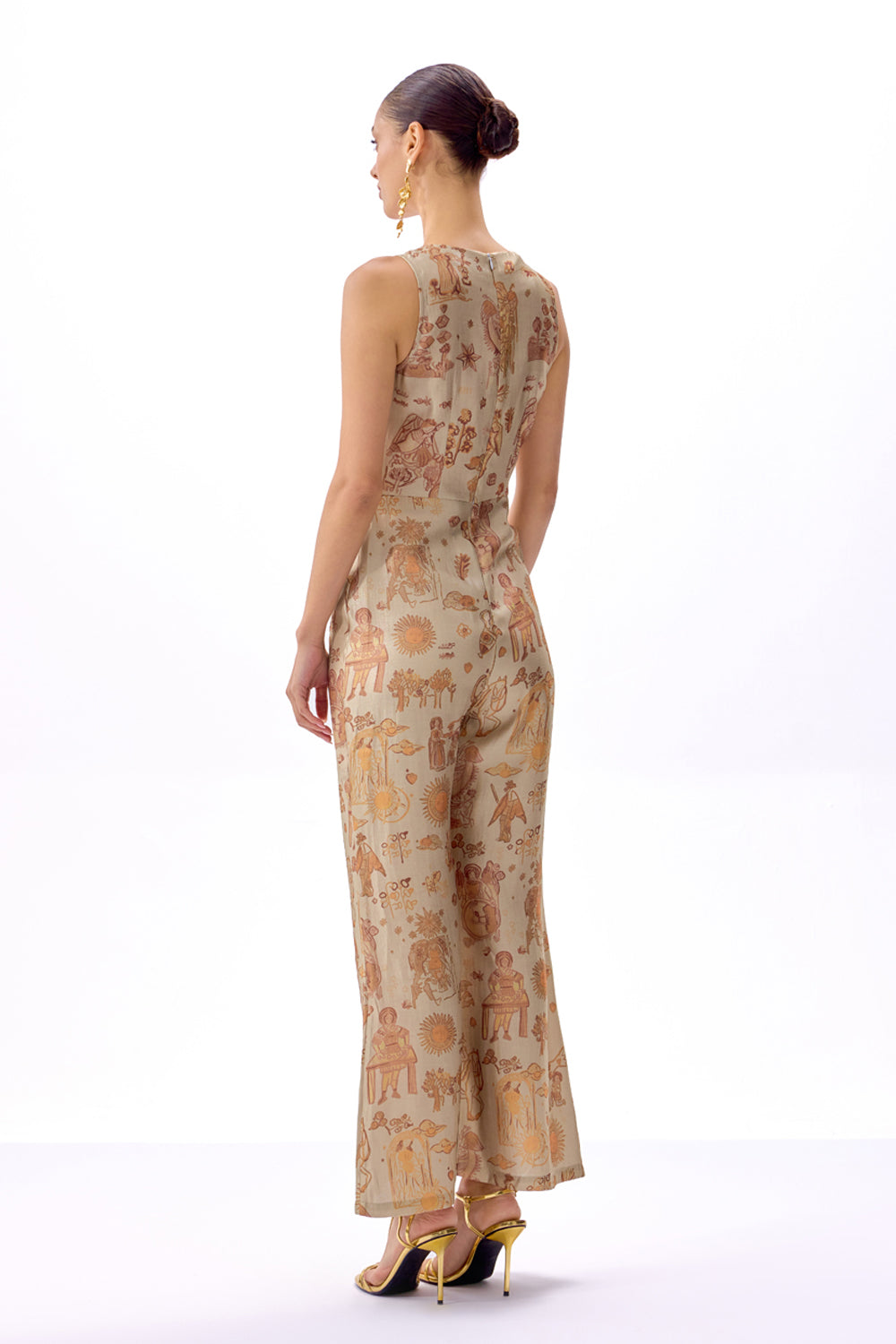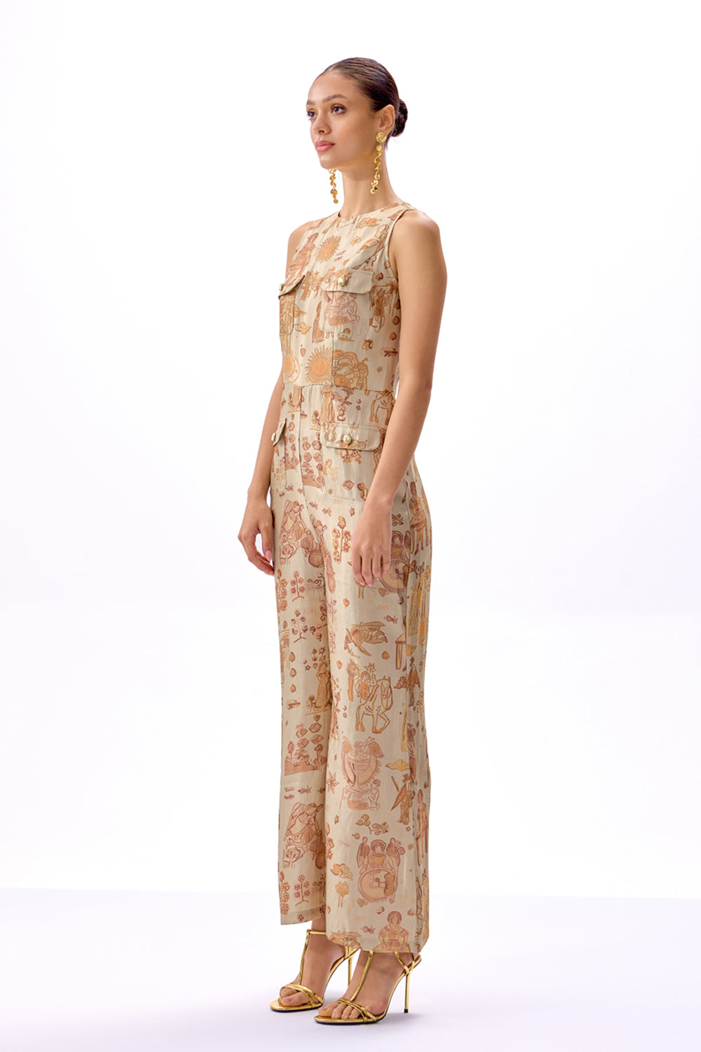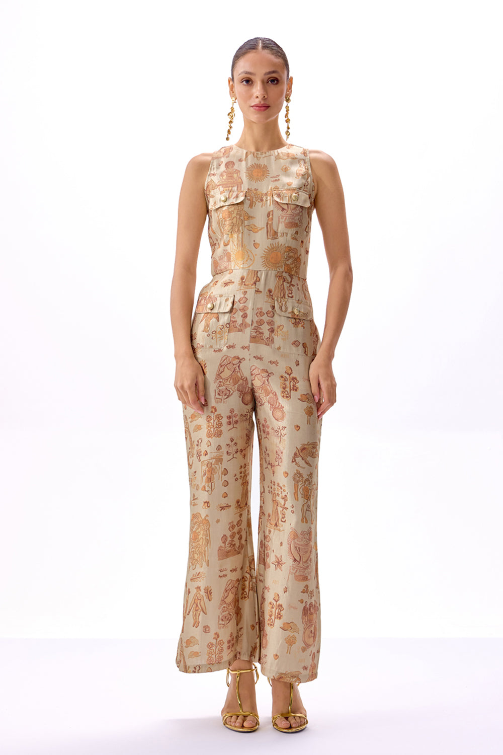 صُممت هذه البدلة خصيصًا للمرأة التي تعرف كيف توازن بين الأناقة واللمسة المرحة. تتميز بدلة جونو من آني بفتحة رقبة دائرية نظيفة وأربعة جيوب عملية مزودة بغطاء، وكل منها مزين بأزرار ذهبية. يكتمل تصميمها المفصل بإغلاق بسحاب خلفي وجانبي، مما يوفر البنية والسهولة. تجذب الانتباه بتصميمها الجريء وطبعتها السماوية، مما يضمن لك التميز دون عناء. تضيف الصورة الظلية ذات الساق الواسعة لمسة من الرقي المريح، مما يجعلها مثالية للانتقال من النهار إلى الليل.